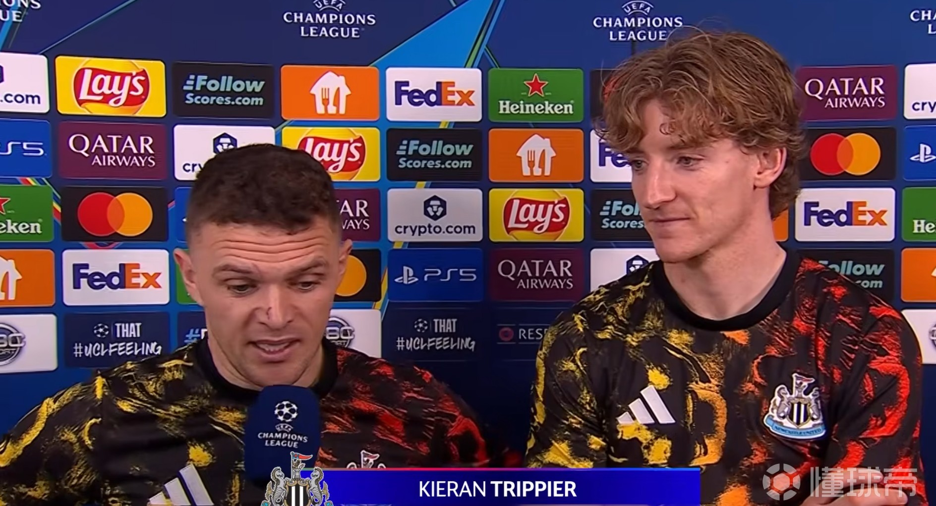 在客场6-1战胜卡拉巴赫的赛后,纽卡后卫特里皮尔和本场比赛上演大四喜的戈登接受了CBS体育的采访。在采访中,他们谈到了因抢罚点球发生争执一事。